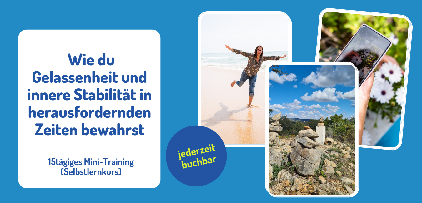 "Liebe Jasmin, mir hat das Mini-Training so gut gefallen, auch wenn ich mit einer quirligen 1,5 Jährigen manche Dinge noch nicht umsetzen konnte. So habe ich diese tollen Möglichkeiten in meinem Handwerkskoffer und kann sie herausholen, sobald ich sie gut in den Alltag integrieren kann. Vielen herzlichen Dank, dass ich dabei sein durfte. Einiges möchte ich Die tolle Entspannungsmusik habe ich heute Mittag direkt mit dem Farben-Atmen verbunden, das möchte ich als festes Ritual gern beibehalten." - Eva (Sachbearbeiterin Telekommunikation)